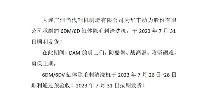 熱烈慶祝華豐動力6DM/6DV缸體除毛刺清洗機順利發(fā)貨!